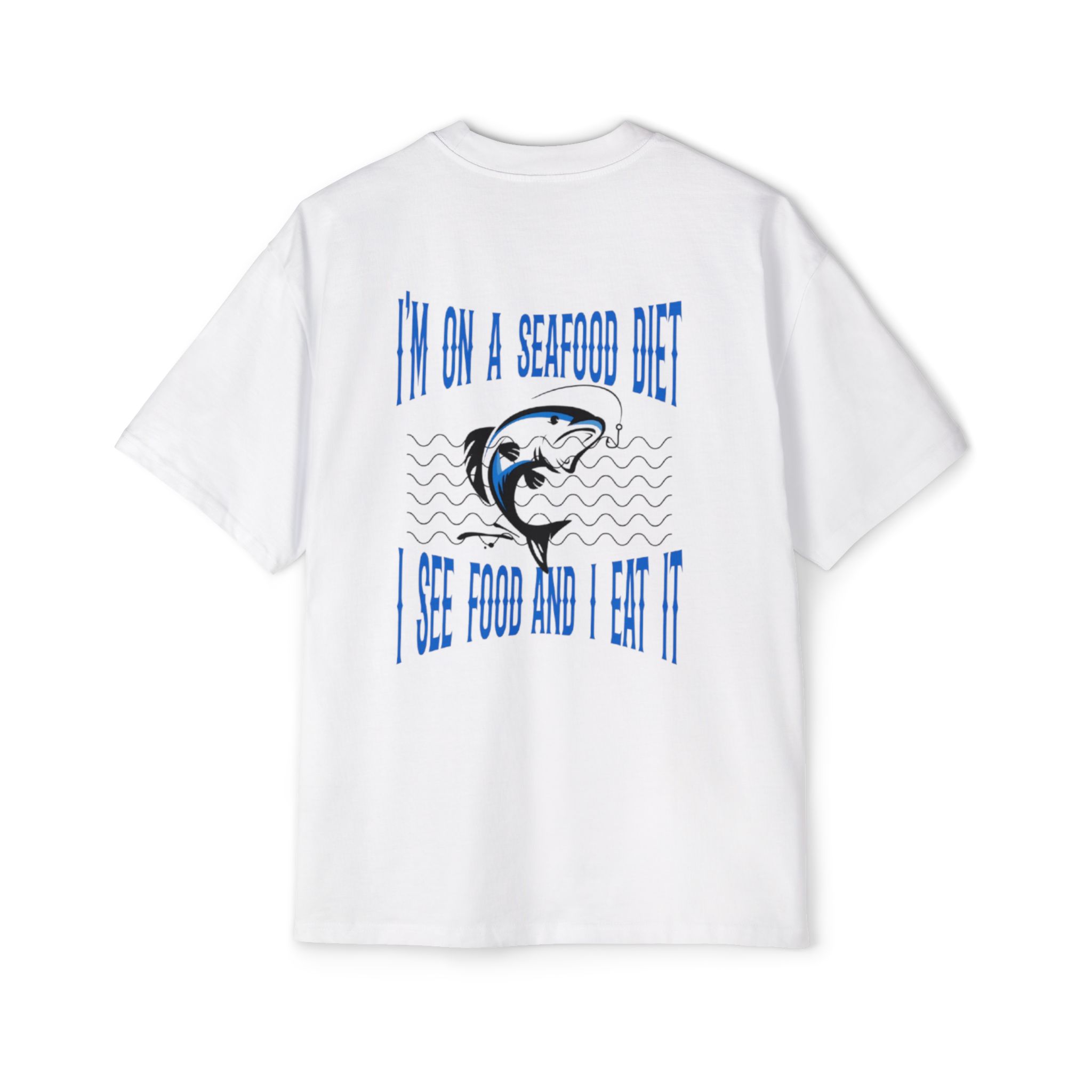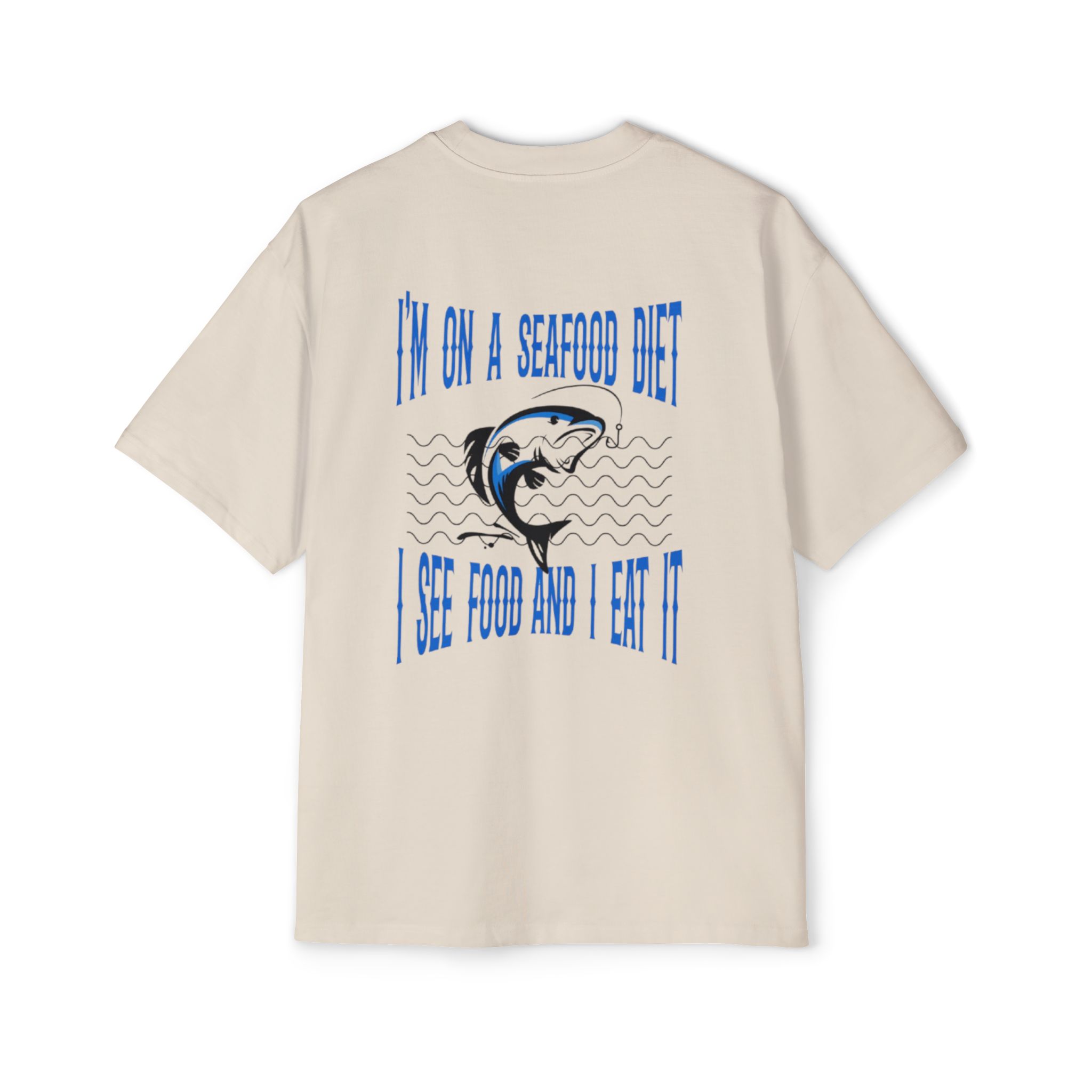 “Show off your humor with our ‘I Am on a Seafood Diet, I See Food and Eat It’ oversized t-shirt! Perfect for food lovers with a sarcastic twist, this heavyweight crewneck tee is crafted from premium 100% carded cotton, offering ultimate comfort and durability. The relaxed oversized fit makes it ideal for casual outings, lounging, or making people laugh wherever you go. Get yours today and explore more witty designs in our collection!”