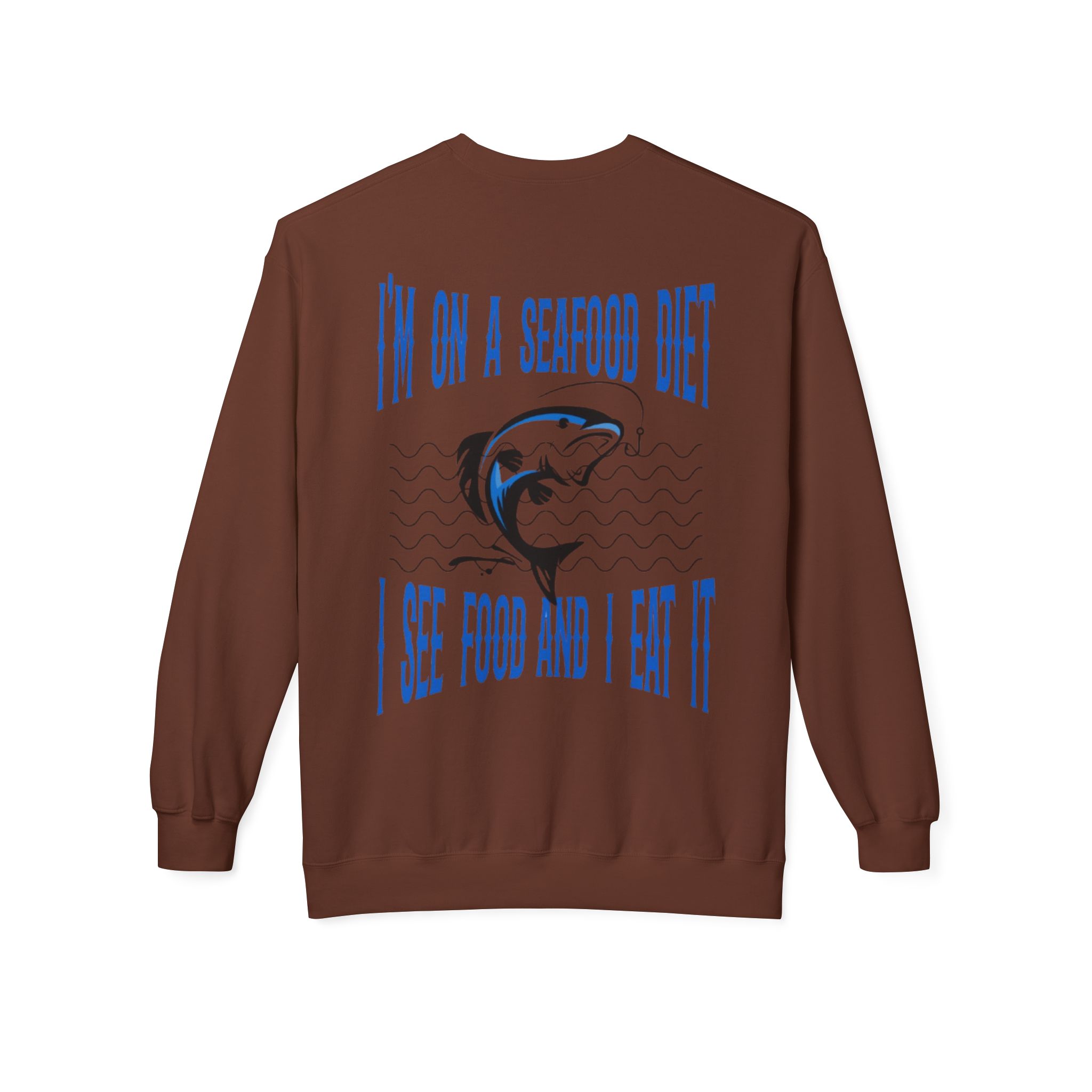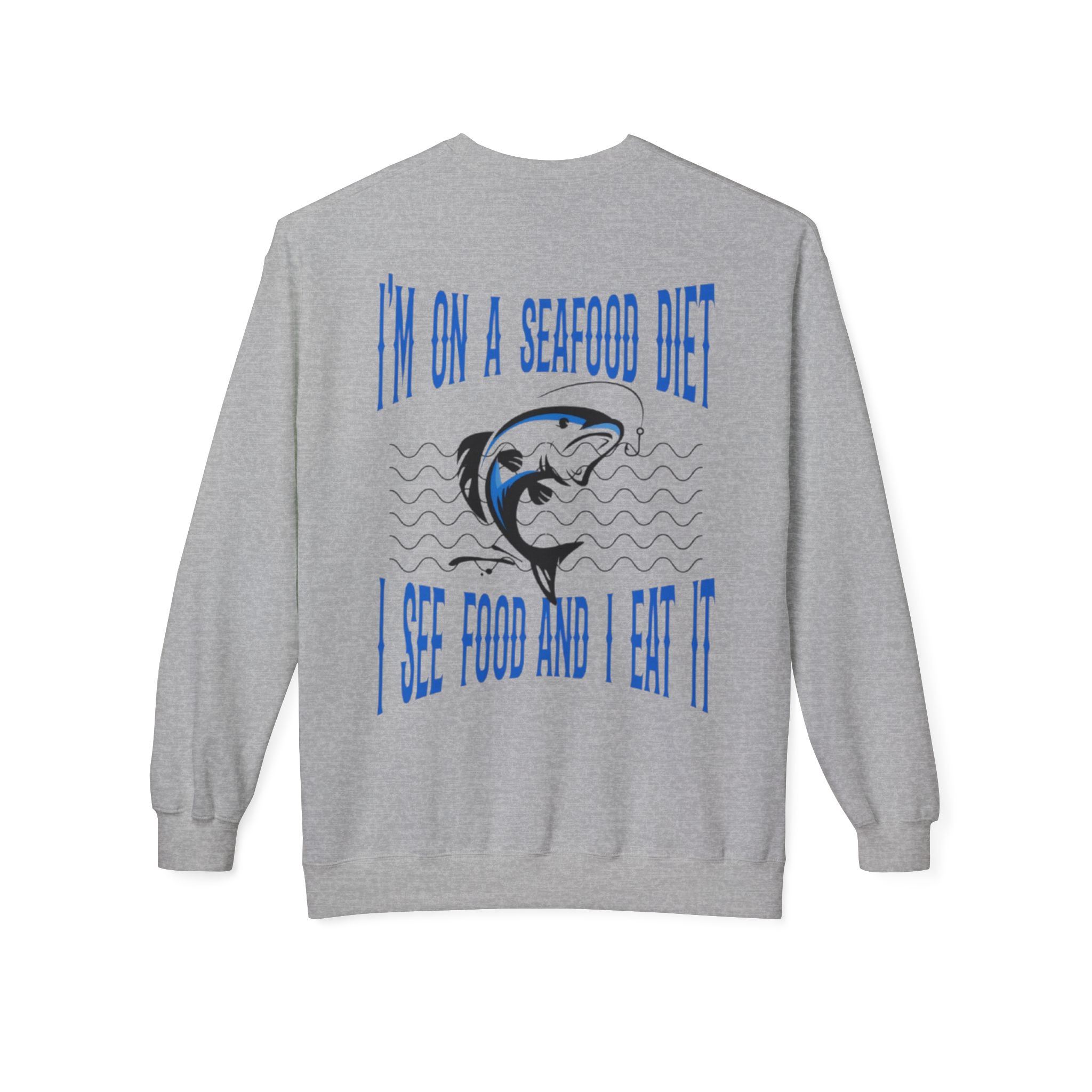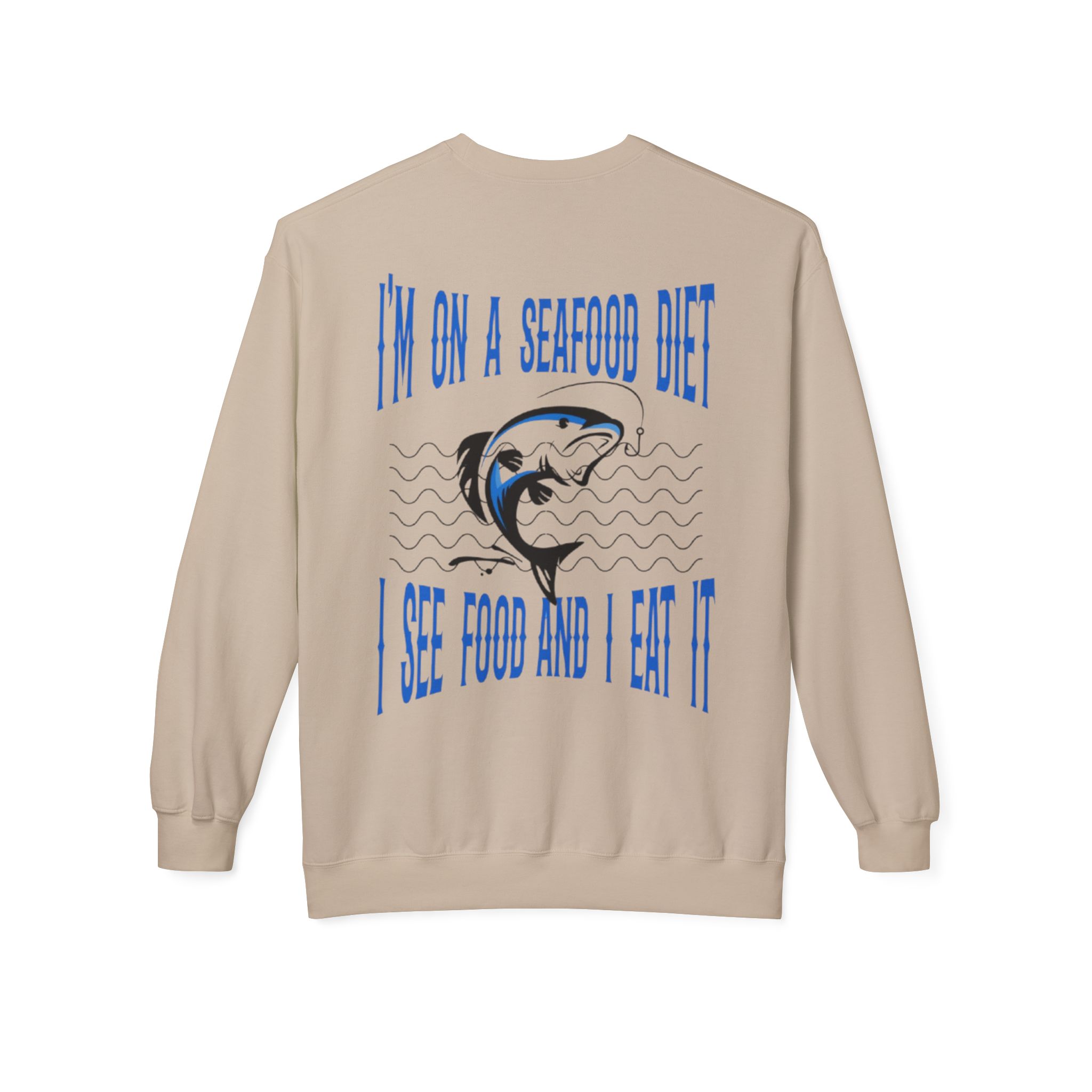 Show off your foodie humor with our “I’m on a Seafood Diet, I See Food and I Eat It” sweatshirt! Crafted from premium-quality fabric, this cozy sweatshirt delivers a soft, comfortable fit that’s perfect for everyday wear. Its versatile style pairs effortlessly with jeans or joggers, making it an ideal choice for casual outings or relaxed days at home. Enjoy the ultimate in comfort and fun with this stylish sweatshirt, and take advantage of free shipping on every order! Don’t wait – grab this premium-quality, cozy sweatshirt today and let your appetite for humor shine!