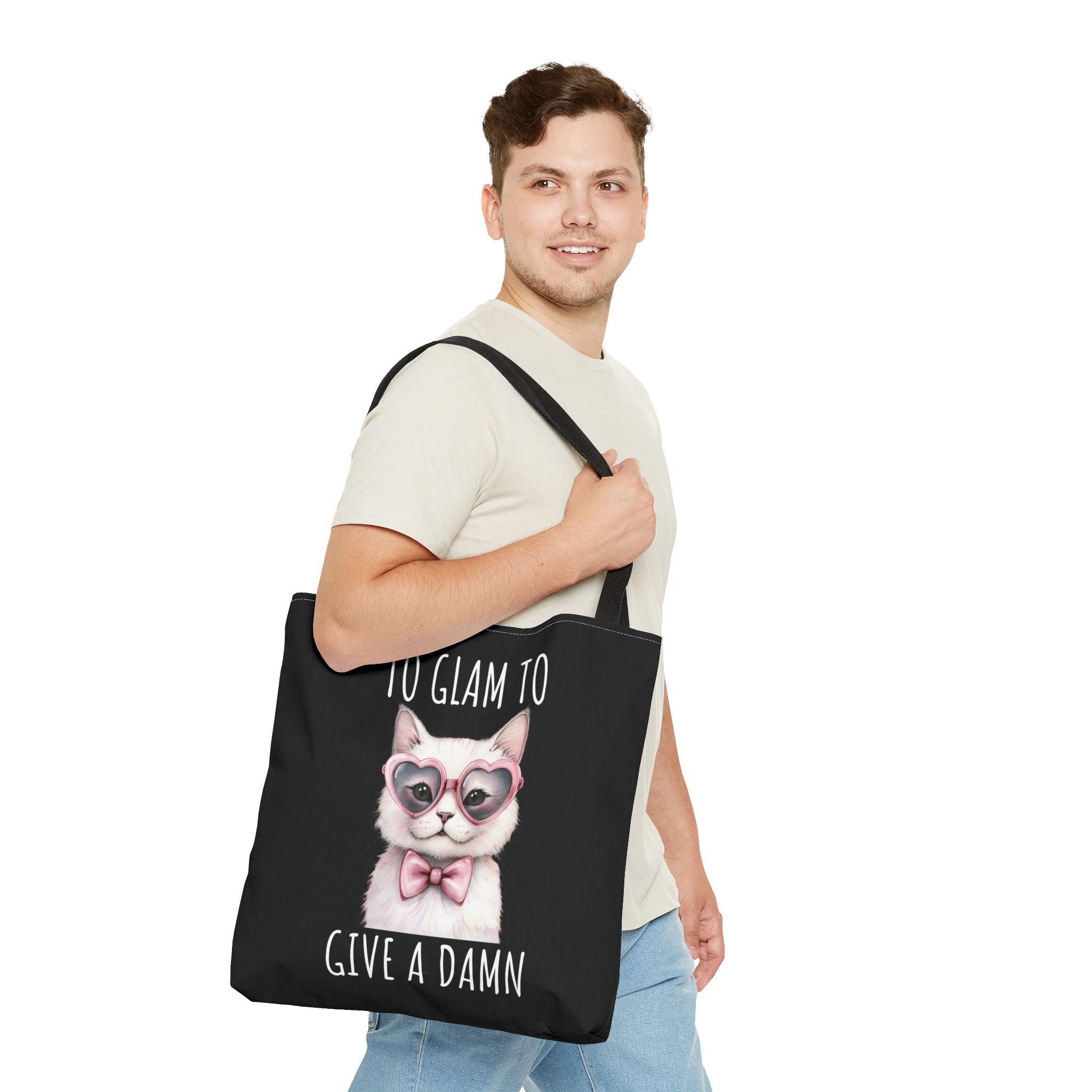 Elevate your everyday style with the “Glam To Give a Damn” cute cat Tote Bag—a perfect blend of fashion and function. Crafted from 100% polyester, this durable and quick-drying tote is built to withstand daily wear. The reinforced cotton handles ensure added strength, while boxed corners maximize storage space for groceries, gym gear, or travel essentials. Inside, the non-woven laminate lining makes cleaning effortless, ideal for busy lifestyles. Whether you’re heading to the mall, beach, or office, this reusable shopping bag combines glam design with practicality. Its heavy-duty construction and easy maintenance make it a must-have accessory for eco-conscious shoppers in the USA. Lightweight yet spacious, it’s the ultimate fashionable tote for those who want to stay stylish without compromising on durability.