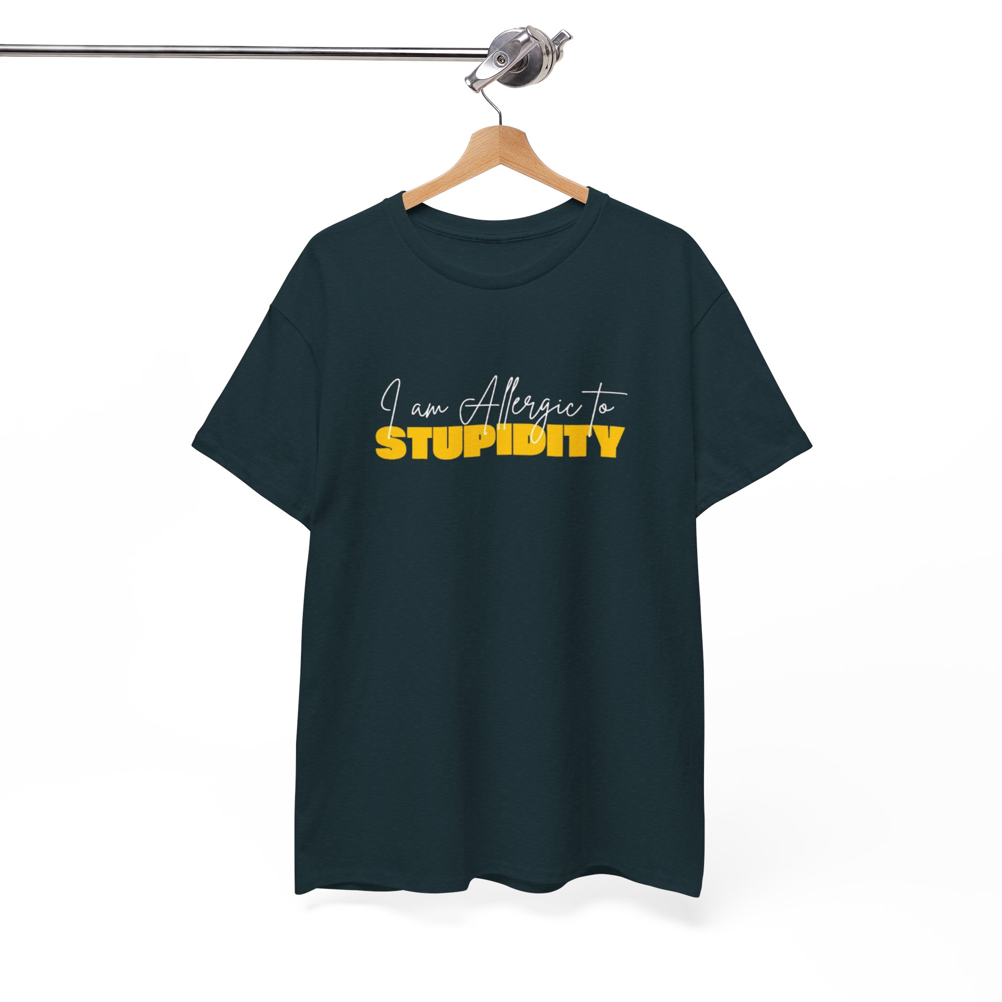 “Keep stupidity at bay with our hilarious ‘I Am Allergic to Stupidity’ t-shirt! Perfect for sarcasm lovers, introverts, and anyone who appreciates a good joke, this classic-fit crewneck tee is made from high-quality 100% US cotton for superior comfort. Whether you’re heading out or just making a statement, this witty tee is a must-have in your wardrobe. A great gift for friends who love humor and sarcasm! Part of our multiple niche-based apparel collection. Order now and enjoy free shipping across the USA!”